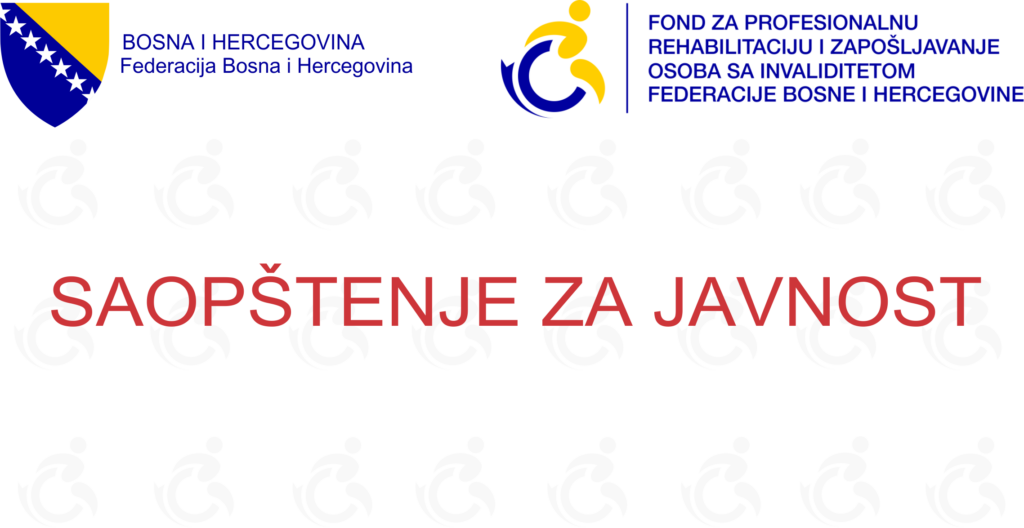 Pozivamo osobe sa invaliditetom da se putem internet stranice Fonda fond.ba ili lično u prostorijama Fonda informišu o svojim pravima i mogućnostima podrške njihovom uposlenju i profesionalnoj rehabilitaciji, kako bi spremno dočekali sljedeći javni poziv Fonda za dodjelu sredstava, koji će biti objavljen do kraja tekuće godine.